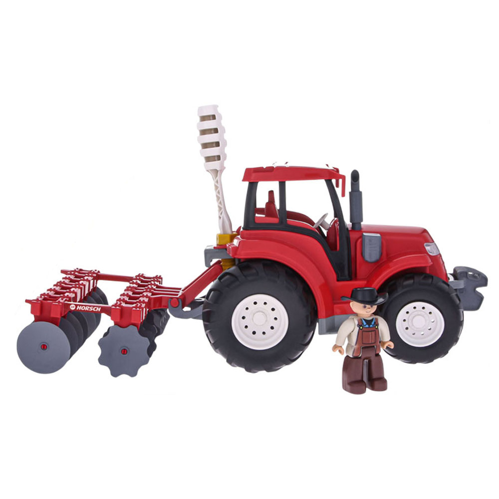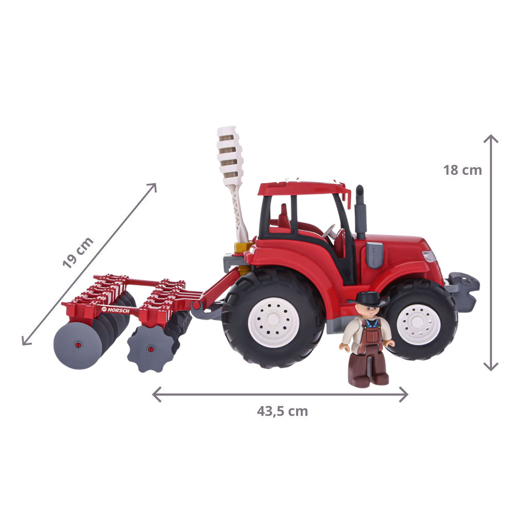 Conjunto Trator com Arado Articulado e Fazendeiro. Dê vida às brincadeiras com este conjunto agrícola da Horsch, feito para encantar crianças e colecionadores apaixonados por máquinas do campo.